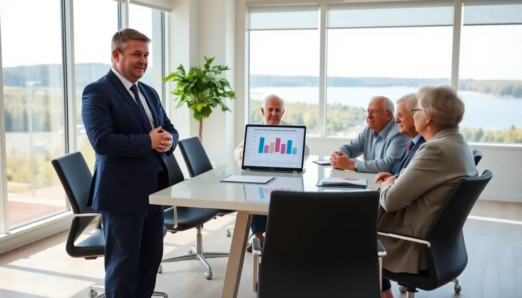 diverse professionals discussing Social Security taxation in a modern office.